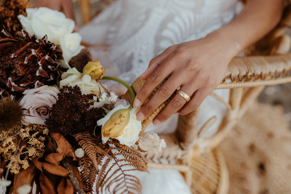 We make every ring to order, start to finish, right here in our family workshop. Our lead jewellers, Ash and Siggy, still pass every ring back and forth, checking, filing, polishing, and re-checking to ensure that every curve is precise and every edge is smooth. With over twenty years of experience and 10,000 rings made, we can promise quality craftsmanship and attention to detail. We want you to love wearing your wedding ring. Click here to meet our makers.