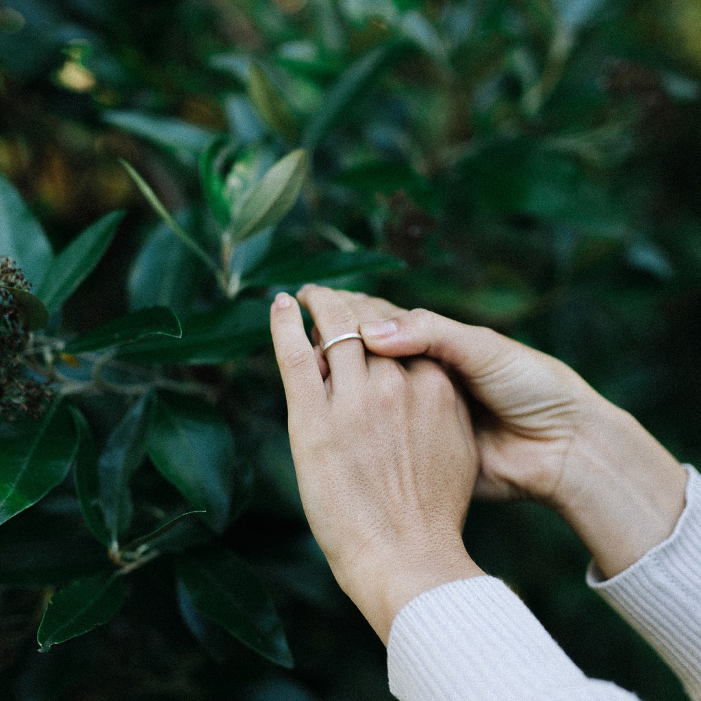 With a lightly curved inside, this ring is super comfy. It's 2mm wide and 1.4mm thick.