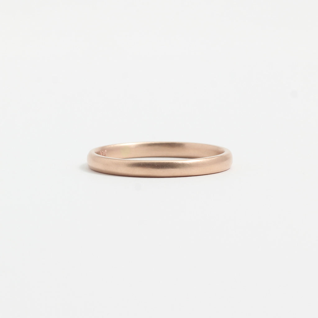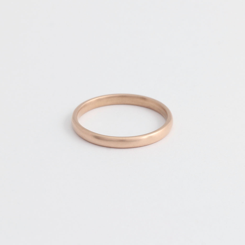 The warm tones of rose gold make it a beautiful choice for any skin tone. With its rounded outside and lightly curved inside, this ring is super comfy. It's 2mm wide and 1.5mm thick.