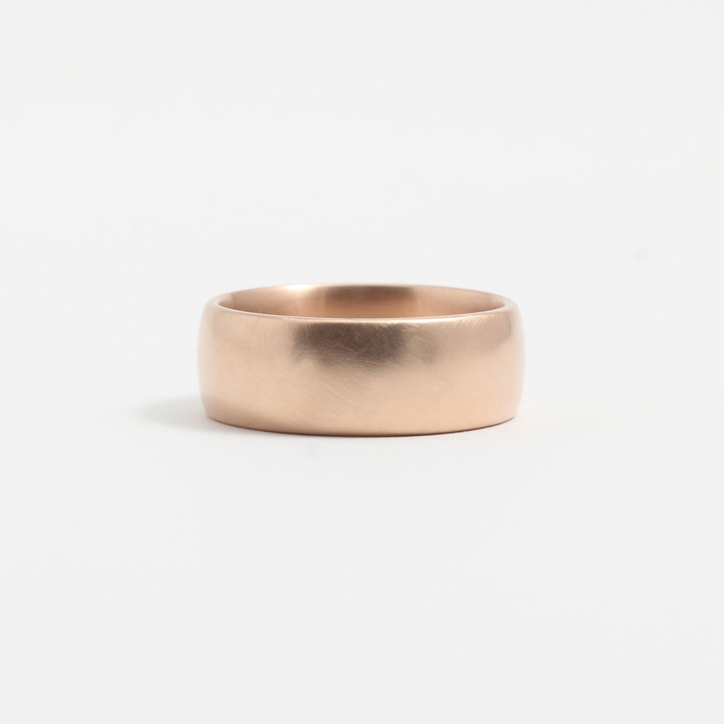 Rose Gold Wedding Band - 7mm Wide - Rounded - Matte