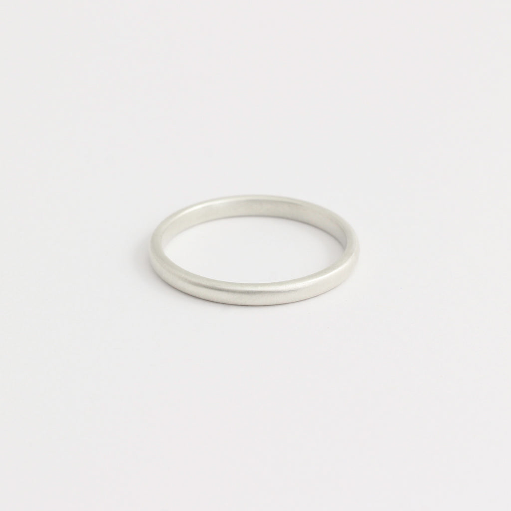 With a rounded outside and lightly curved inside, this ring is super comfy. It's 2mm wide and 1.5mm thick.