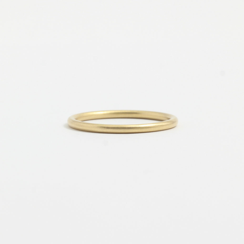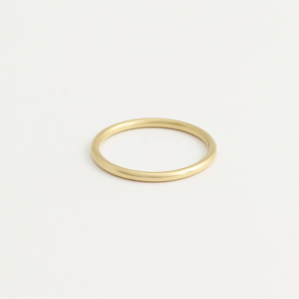The warm tones of Yellow Gold are a classic finish for a wedding band. This ring is 1.5mm wide and 1.5mm thick with a rounded outside and lightly curved inside, so it’s super comfy.