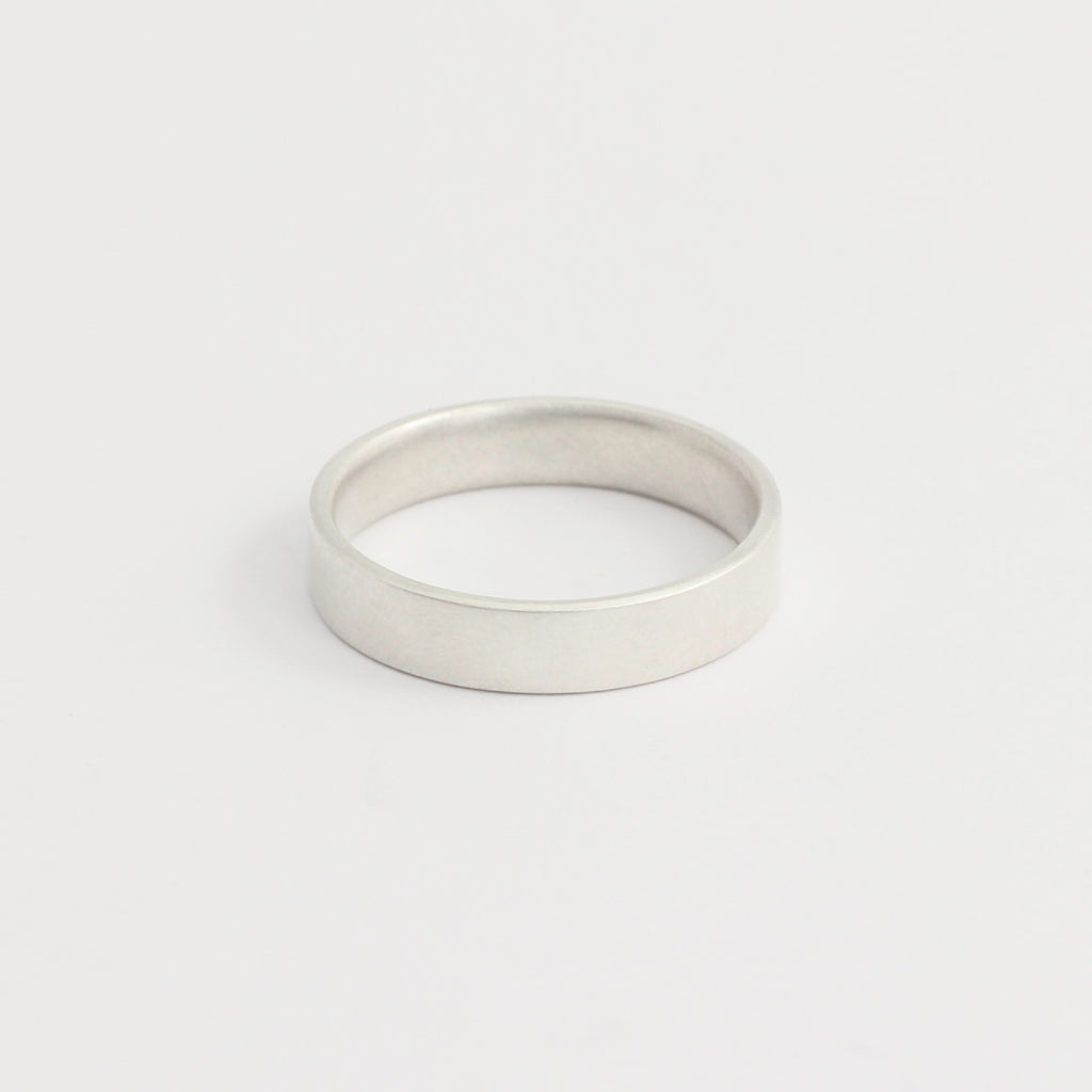 With a lightly curved inside, this ring is super comfy. It's 4mm wide and 1.3mm thick.