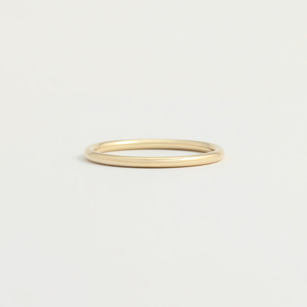 The warm tones of Yellow Gold are a classic finish for a wedding band. This ring is 1.5mm wide and 1.5mm thick with a rounded outside and lightly curved inside, so it’s super comfy.