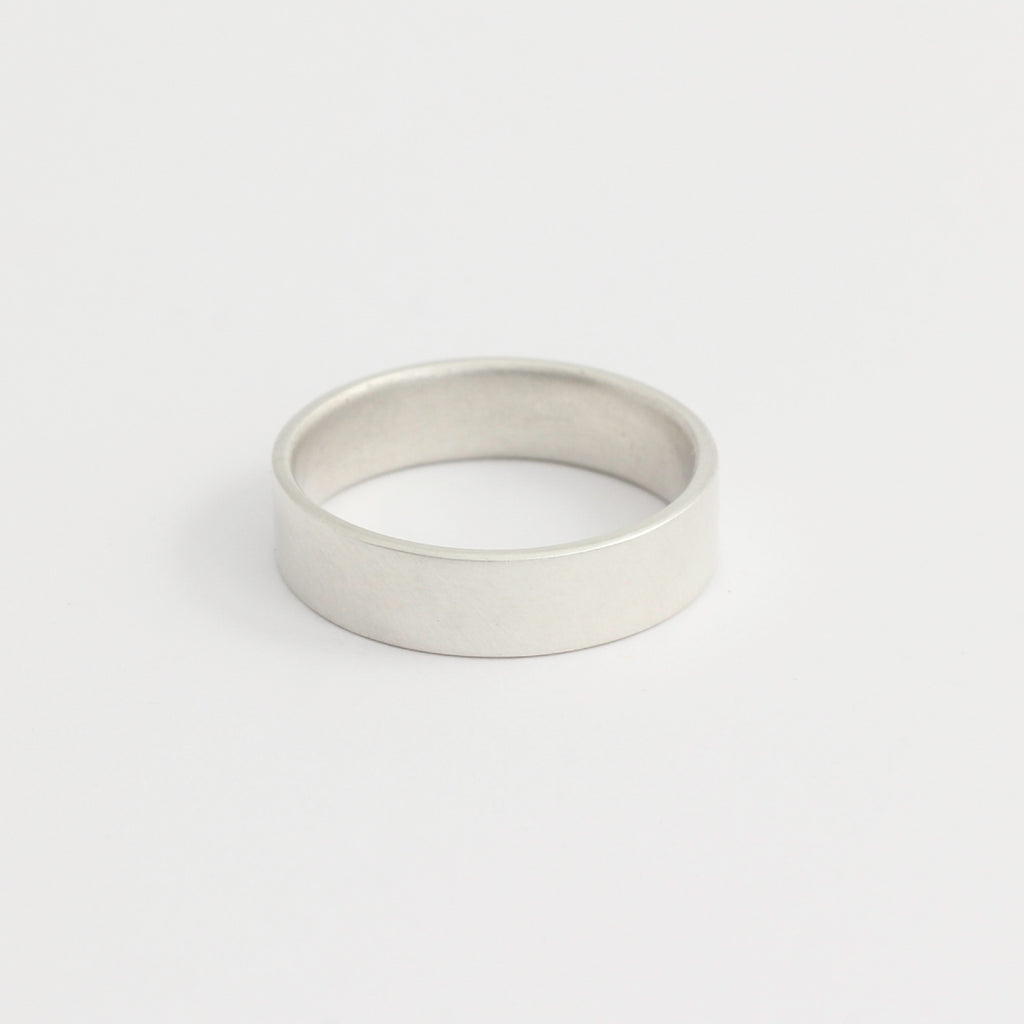 White Gold Wedding Band - 5mm Wide - Flat - Polished