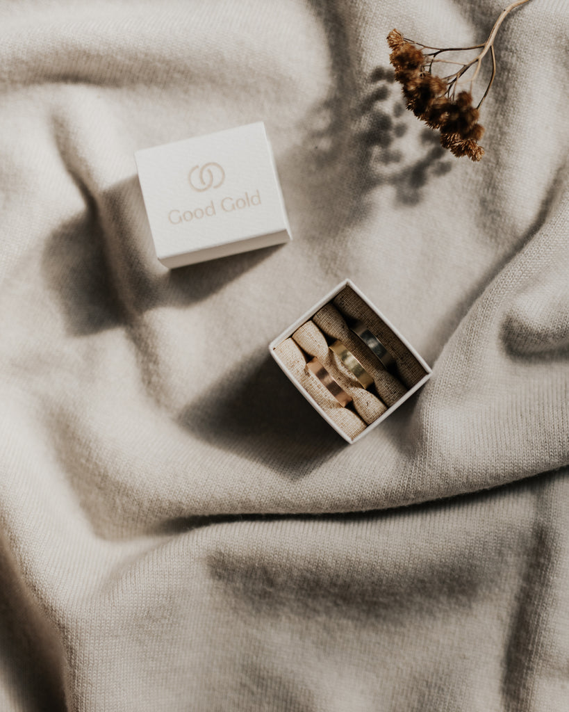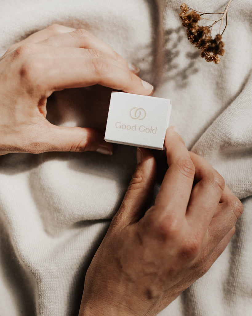 We've worked with Give Packaging for years as we love that they mirror our ethics and that each ring box is handmade in New Zealand.
